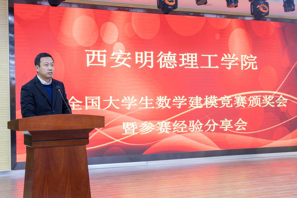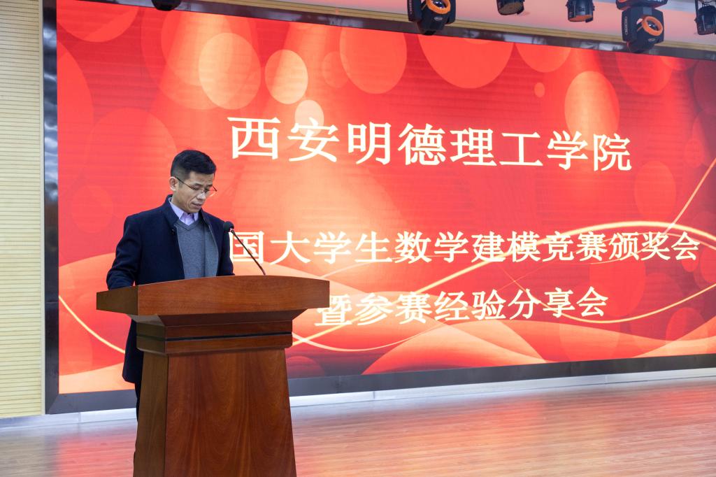 其次,郑汉印副院长宣读2019、2020年全国大学生数学建模竞赛获奖名单。2019年到2020年学院数学建模竞赛取得了不斐的成绩,2019年获陕西省一等奖5项,陕西省二等奖14项,并获陕西赛区优秀组织奖。2020年获陕西省一等奖8项,陕西省二等奖17项,并再次荣获陕西赛区优秀组织奖。与会领导为2019年获奖同学颁发了荣誉证书。