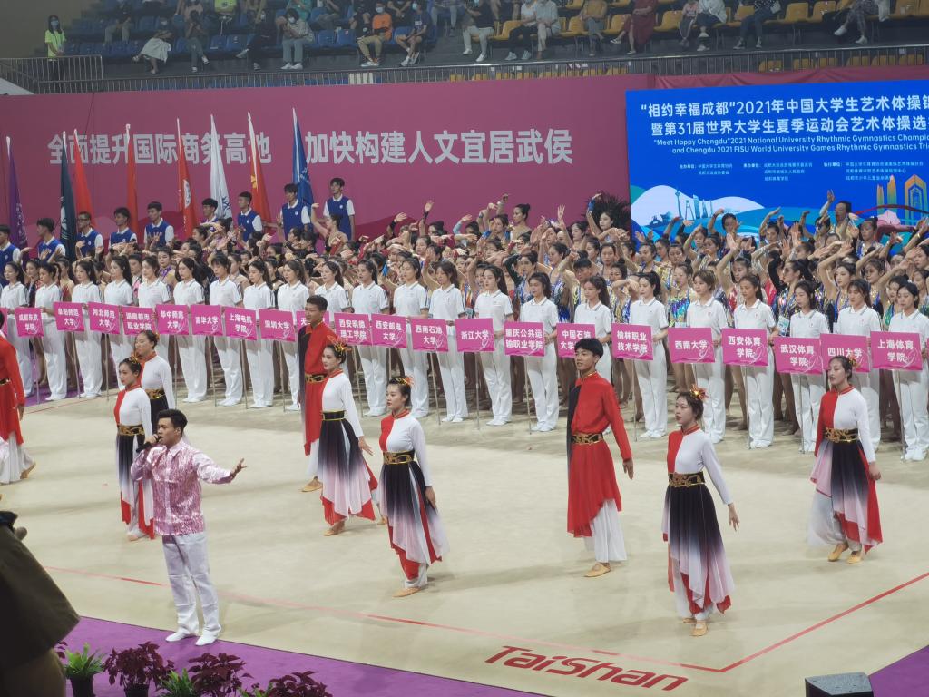 “相约幸福成都”2021年中国大学生艺术体操锦标赛暨第31届世界大学生夏季运动会艺术体操选拔赛在成都体育学院拉开序幕。本次比赛有来自全国各地31所高校的284名选手参与角逐,比赛为期3天。