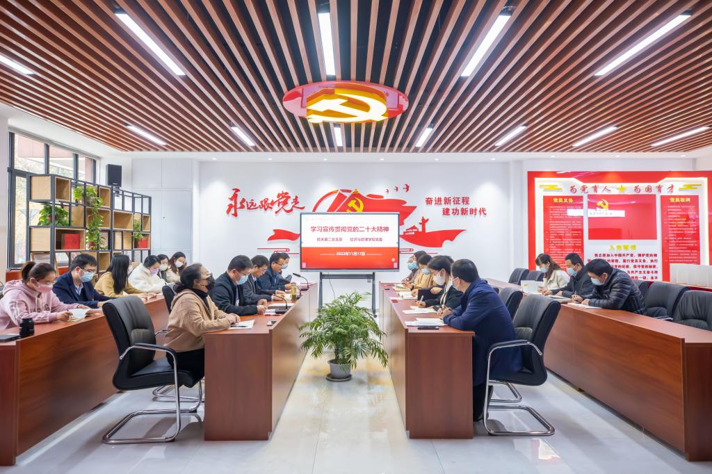 11月17日,机关第二党支部联合经济与管理学院党委,在学校党群服务中心联合开展主题党日活动,专题学习党的二十大精神。会议由机关第二党支部书记张亚平主持。