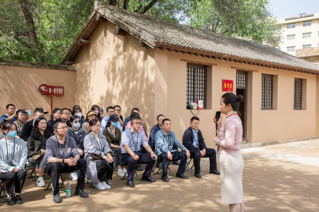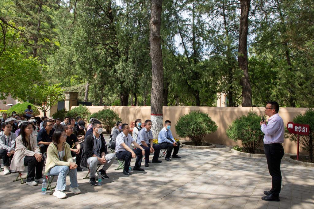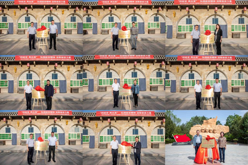 在扎实开展学习贯彻习近平新时代中国特色社会主义思想主题教育之际,为全面推进学校“大思政课”体系建设,用党的创新理论铸魂育人,5月13-14日,学校与延安艰苦奋斗红色文化培训中心、延安革命纪念馆、杨家岭革命旧址、中共中央西北局纪念馆、凤凰山麓革命旧址、陕甘宁边区政府旧址、延安南泥湾革命旧址、延安鲁艺文化中心、洛川会议纪念馆共建“大思政课”实践教学基地揭牌仪式在延安举行。各革命旧址负责人、学校领导、各基层党组织书记、部分党员参加活动。