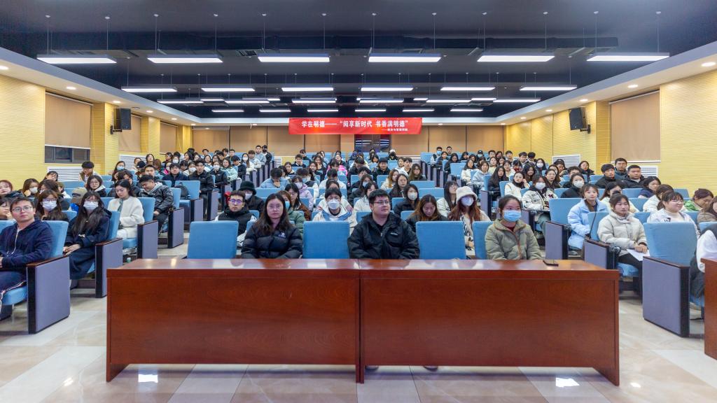 为深入学习宣传贯彻党的二十大精神,激发广大师生读书热情,营造爱读书、多读书、读好书的良好氛围。11月28日晚,经济与管理学院在建德楼202举办“学在明德”主题党日活动——“阅享新时代、书香满明德”读书分享会,学院党建专干、学生党支部书记、学生党员、发展对象、入党积极分子代表、团学干部代表共170余人参加,会议由学生第五党支部党员胡梦莹主持。
