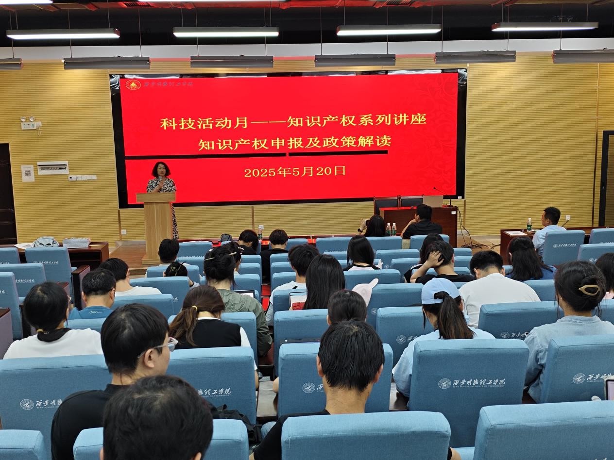 讲座邀请北京众合诚成知识产权代理有限公司陕西分公司的王健辉和俞倩担任主讲嘉宾,科技处副处长雷娟主持讲座,70多位师生参与。