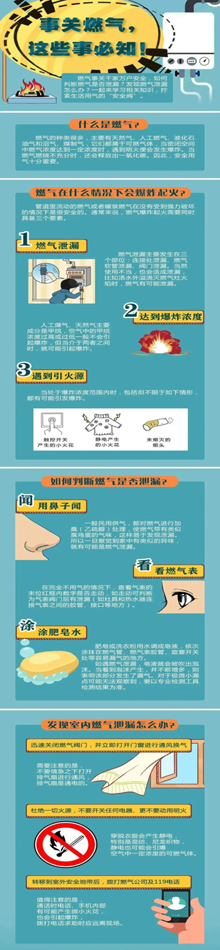 8.闻到燃气臭味,严禁开启任何电器开关,立即关闭燃气表前总阀门,轻轻打开门窗通风,到室外拨打燃气公司报修电话。