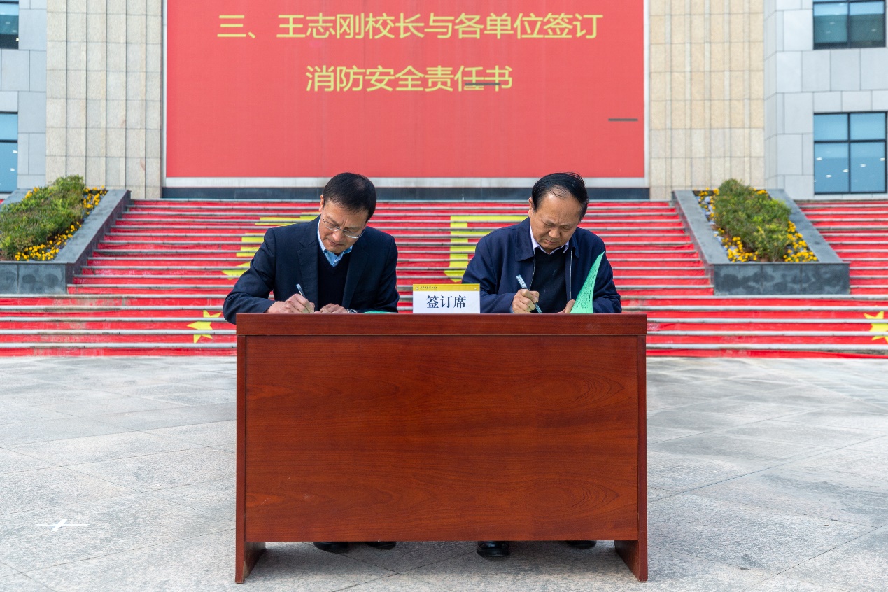 活动现场播放了《高校火灾警示教育片》,宣读了《关于成立学校消防安全委员会的通知》,王志刚校长分别与二级学院、职能部门和教辅单位签订了《2023-2024学年消防安全责任书》,陈鹏副校长对新学年消防安全工作提出了目标要求。