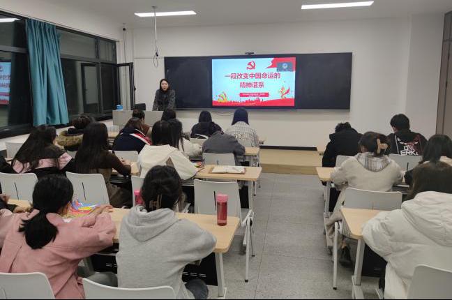 为深入开展学习贯彻习近平新时代中国特色社会主义思想主题教育,筑牢支部战斗堡垒,艺术与设计学院学生第一党支部于11月21日晚开展以《一段改变中国命运的精神谱系》为题的专题党课。支部全体党员、发展对象线上线下同步参会,由支部书记张睿华主讲。