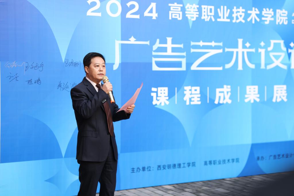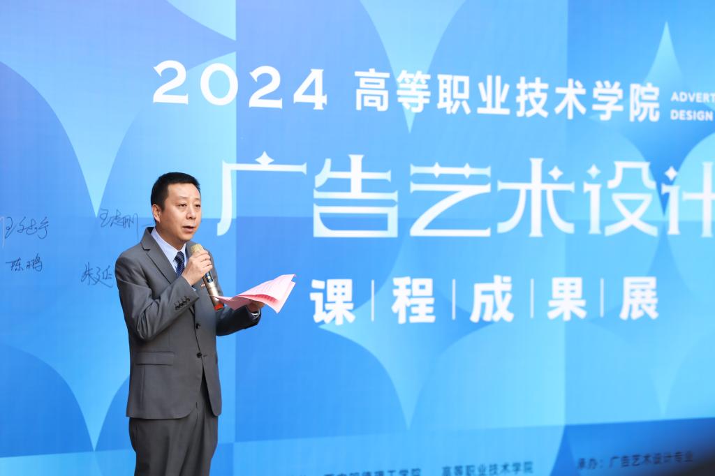 随后,高等职业技术学院院长舒忠讲话表示,广告艺术设计专业本次的课程成果展汇集了学院数名广告艺术设计专业小艺术家们的心血结晶,并详细说明了本次展览所涉及到的5大板块内容,分别是近三届专业学生的专业课程优秀作业展、学科竞赛获奖作品展、专业研究课题展、课程实践实训展以及第一届毕业生优秀作品展等方面内容;其次,舒忠院长预祝广告艺术设计专业首届课程成果展取得圆满成功,并对专业学生们的辛勤工作和卓越才华表示赞赏。