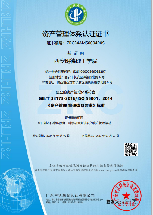 近日,ac米兰官方网站资产管理处在接受质量管理体系认证机构的严格现场审核后,荣获ISO 55001资产管理体系认证。该认证覆盖了ac米兰全日制本科学历教育以及科学研究活动中所涉及的全部资产管理范畴。
