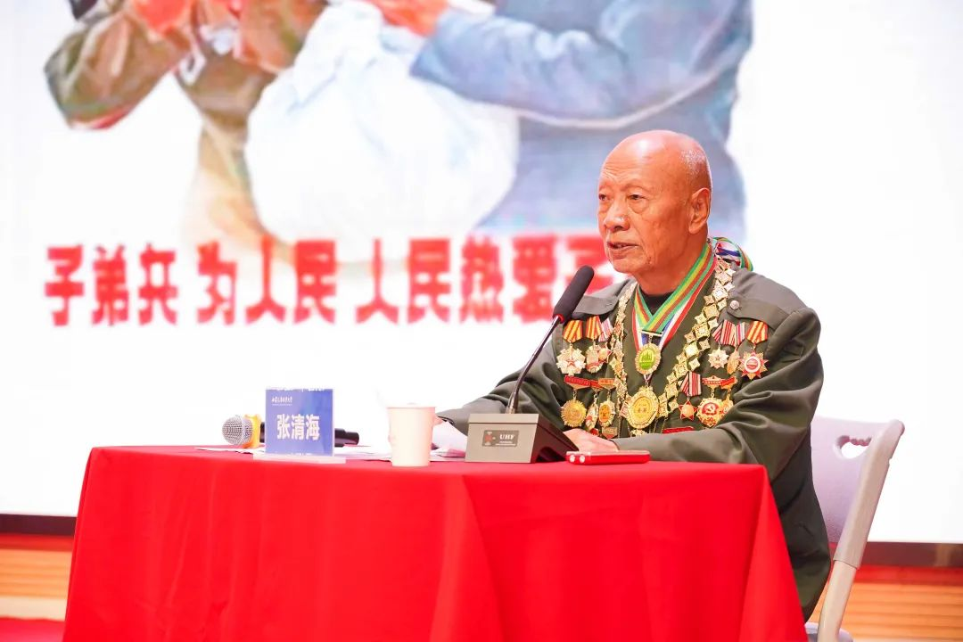 张清海:男,汉族,生于1949年2月,共产党员,陕西省澄城县军干所重残功臣、军队退休干部,全国“两模”、“五先”殊荣称号获得者。1968年春光荣入伍,在国防施工及抢险救灾中多次负伤致重残,22次立功受奖,受到中央军委和兰州军区首长高度赞誉。1987年因伤残提前退休后,继续奉献社会,为学校、部队官兵、社区居民等作红色基因报告432场,听众达73.4万人,被誉为“军中铁人新楷模”和“退役军人一面旗”。曾获“全国自强模范”“全国道德模范提名奖”等37项荣誉,并多次受到党和国家领导人接见。