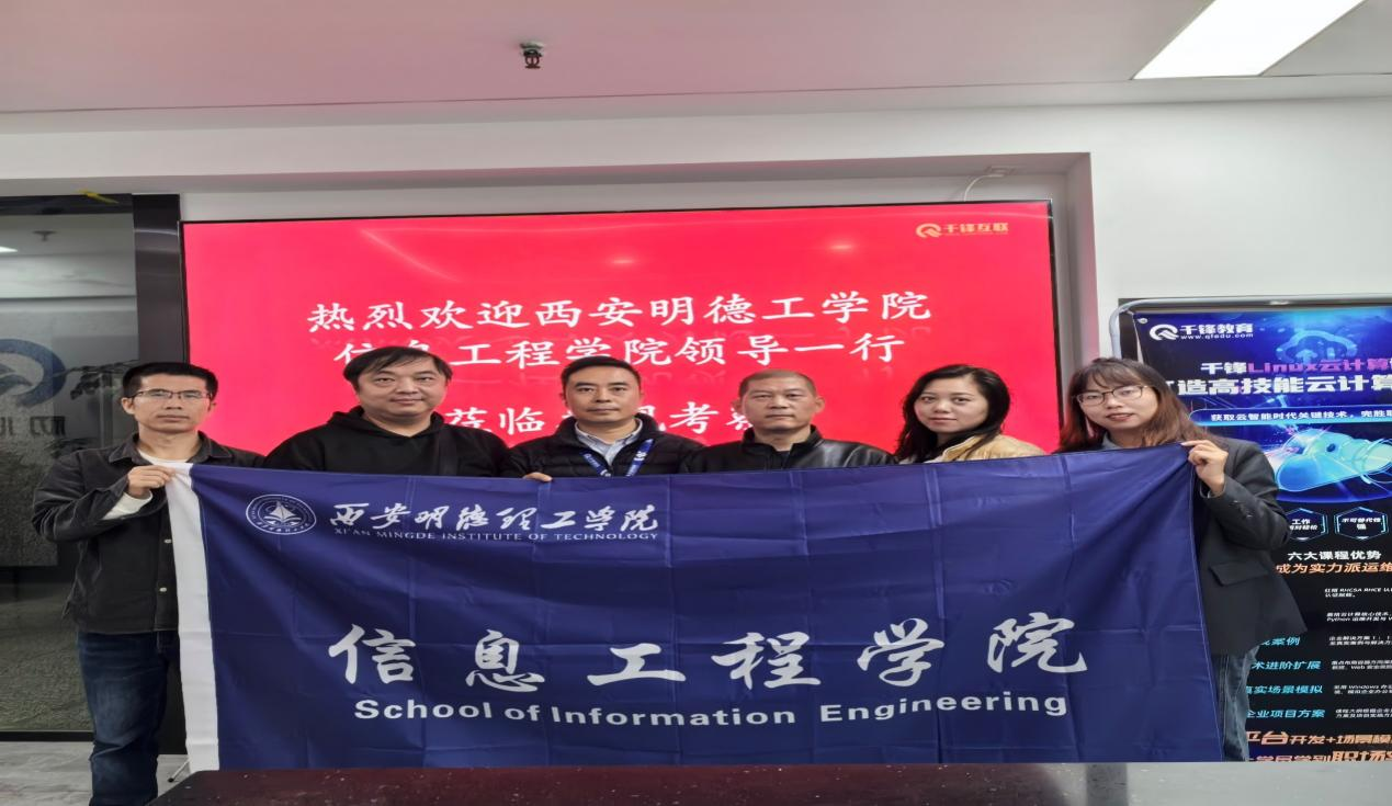 2025年10月17日,为加强校企合作,拓宽学生实习就业渠道,计算机科学与技术专业组织了一次访企拓岗活动。此次活动由该专业负责人蔡现龙老师带队,李梅、胡伟老师一同前往北京千锋互联科技有限公司西安分公司进行实地考察与交流。