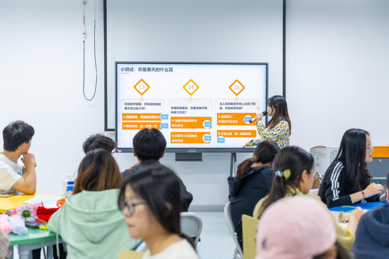 课堂上,信息工程学院辅导员兰艳老师模拟了同学们在春日校园漫步的场景,引导大家根据对不同花类型的喜好,进行“花样人格测试”,深入探索自己的人格特点,明晰自身人格的优劣势。这种新颖有趣的开课方式,激发了同学们的好奇心与参与热情,大家在轻松愉快的氛围中开启了自我认知的新旅程。