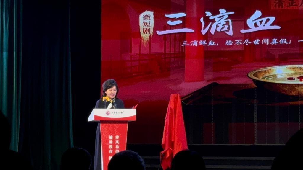 开机仪式现场,气氛热烈庄重,各级领导嘉宾先后登台致辞,共同为微短剧《三滴血》启幕助力。党的二十大代表、西安演艺集团副总经理、西安易俗社第18任社长惠敏莉在致辞中深情阐述了传统文化传承的时代意义。她指出,中华优秀传统文化是中华民族的精神命脉,竖屏微短剧《三滴血》的创作,是对秦腔经典剧目进行的新媒体化创新尝试,旨在以青年喜闻乐见的传播形式,让传统文化“活”起来、“火”起来。她强调,传统文化的传承与发展离不开新时代青年的参与和接力,期待青年群体能够主动肩负起文化传承使命,为传统文化注入青春活力,推动中华优秀传统文化在新时代焕发出新的生机与光彩。