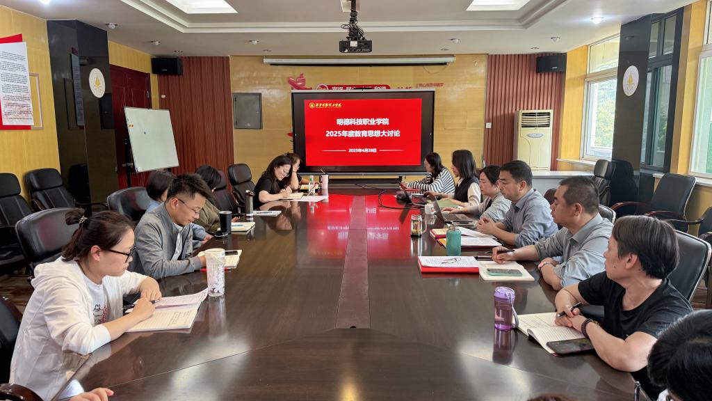 为落实立德树人根本任务,探讨如何构建具有学校特色的党建与思想政治工作格局,明德科技职业学院于4月28日下午在明理楼216会议室召开了教育思想大讨论第一次专题研讨会。会议由党总支书记王庭良主持,学院党政班子成员、各党支部书记、党建专干、党校负责人、团委书记、副高级及以上职称教师代表、年级组长、教学管理代表参加了研讨会。