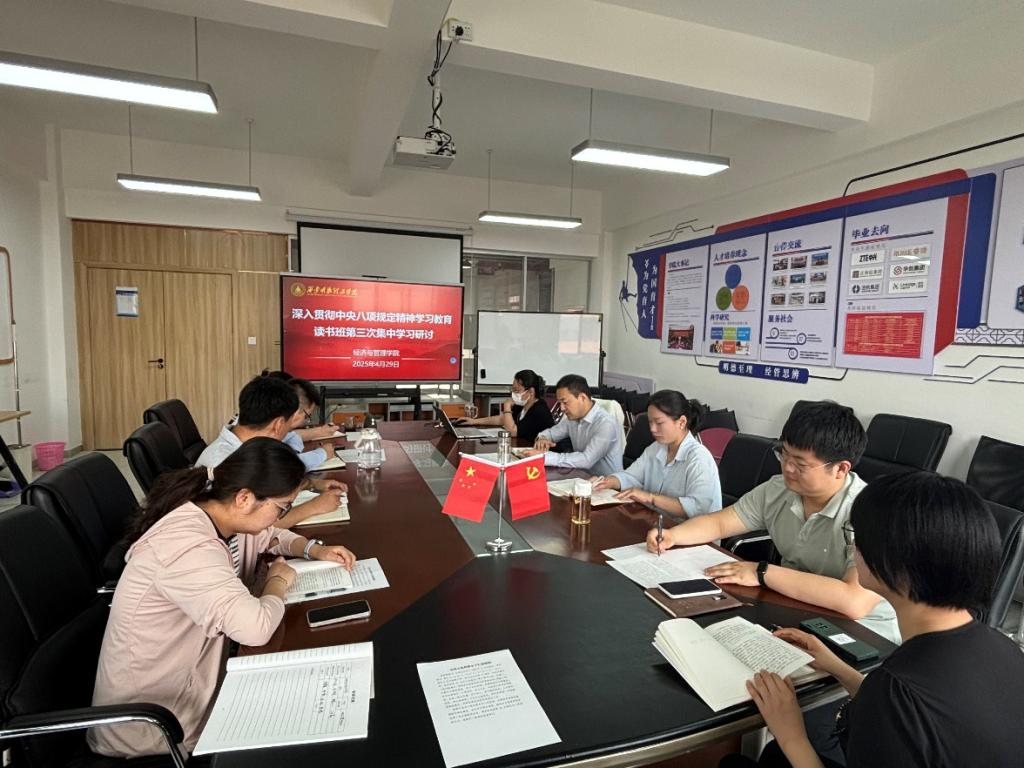 4月29日,经济与管理学院举行深入贯彻中央八项规定精神学习教育专题读书班暨党委理论学习中心组学习会,学院党委委员、师生党支部书记和团委书记参加会议,会议由学院党委书记兼行政副院长何文举主持。