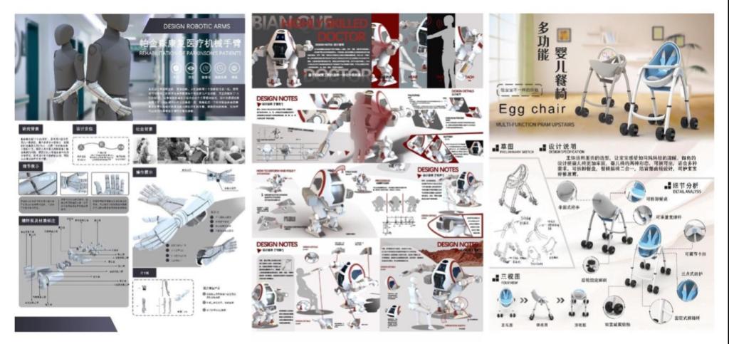3.树立以创新能力为导向的教学目标,以产品设计全产业链模式为主要参考依据。通过教、学、做一体的产品创新设计平台,将消费电子产品、家用电器、日用品、文创产品等设计项目引入课堂,采用项目制课程的形式组织教学活动。搭建多元立体的教学模式,包括课外活动如“第二课堂”,以加强学生的实践和创新能力培养,特别强调实践能力的培养。通过参加国内外赛事、开展创新实践,建立有效的联动教学机制,实现人文素养与专业技能的兼容培养。构建融合思政元素为特色的教学设计,在课程体系中融入产业发展动向和社会热点问题,结合实际设计项目,形成明显的教学特色,取得显著的教学效果。