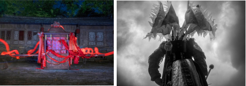 ↑专业学生王博皓的摄影作品《表演者》和王书豪的摄影作品《意念》在大茂城艺术馆展出