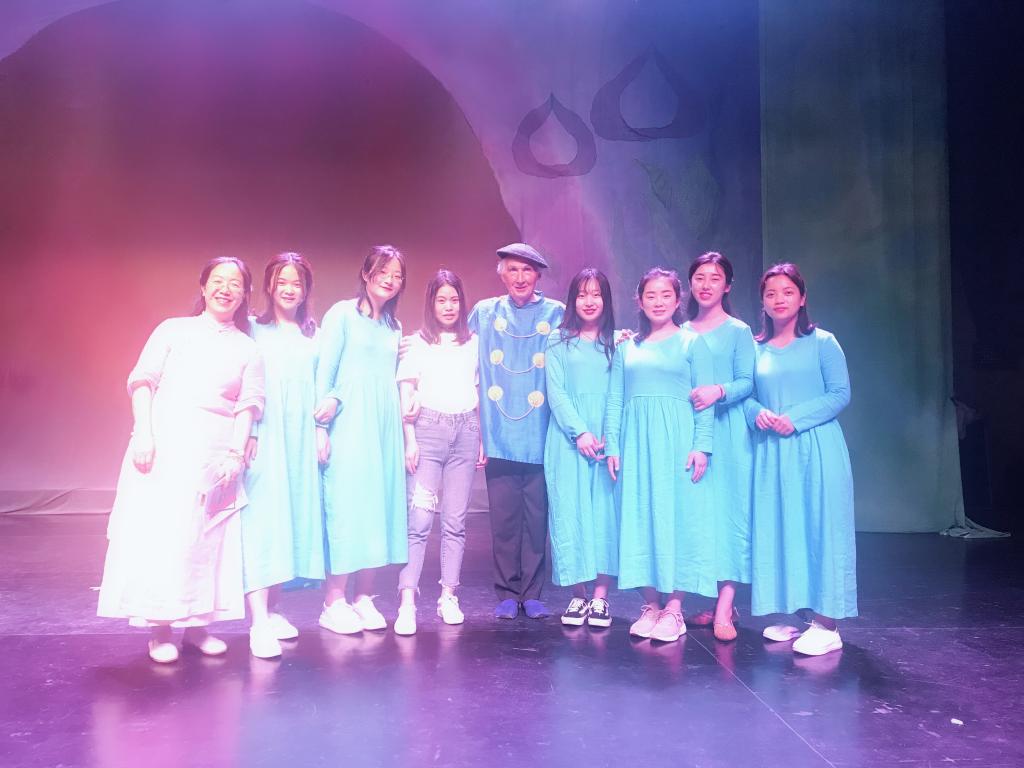 3. 2014级孙敏佳、霍心禾、张紫莹和2015级王若卿等2017年4月参加西安华德福小学实践活动,陕西省古都大剧院,德国优律司美演出团体。