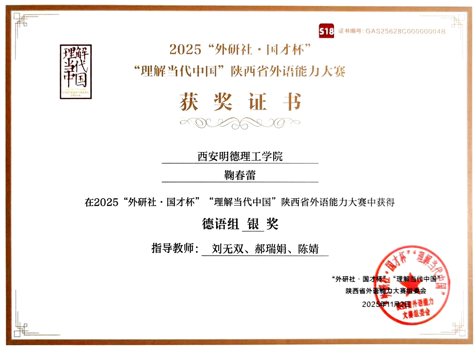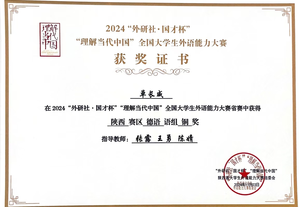为了突出专业实践培养以及提高学生学习兴趣,我院开设了“德语书法大赛”、“德语朗读大赛”、“德语演讲、歌唱比赛”、“德语配音大赛”、“德语翻译大赛”,同时还参加了校外的各种比赛,如中西部翻译大赛,西外举办的“德语魅音配音大赛”,前后分别获得三等奖项。